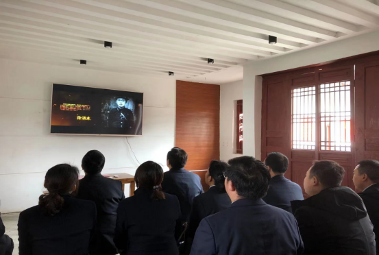 在党史学习教育展室,观看了《红二十五军在华阳》的专题片,两名党员以《党的百年畅想》为内容,进行了诗歌朗诵,最后还开展了党史知识自测。
