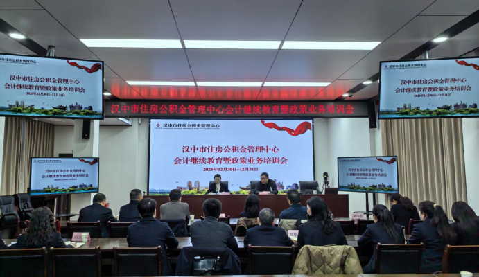 为深入贯彻落实上级关于民生工作的决策部署,全面提升公积金系统干部职工专业素养与履职能力,推动住房公积金工作高质量发展,12月30日至31日,汉中市住房公积金管理中心成功举办会计继续教育暨政策业务专题培训,全市各县区管理部职工、中心各科室科长及业务骨干、公积金便民旗舰店及服务网点工作人员共计100余人参加了此次培训。