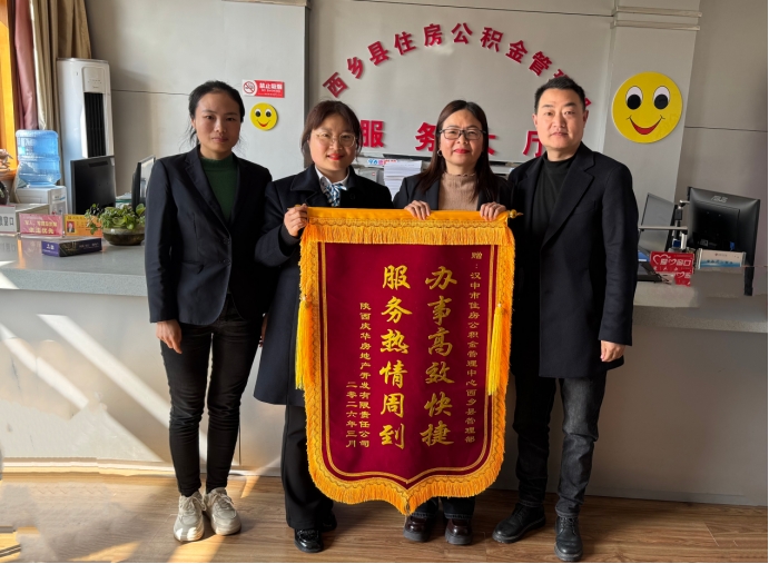 3月26日,陕西庆华房地产开发有限责任公司代表怀着诚挚的谢意,将一面绣有“办事高效快捷、服务热情周到”的锦旗送到西乡县管理部,以此感谢管理部长久以来在业务办理中给予的专业指导与贴心服务,对管理部高效务实的工作作风和热情周到的服务态度给予高度肯定与赞誉。